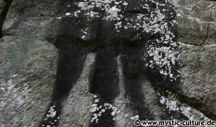 Adler-Hohlbild über dem Eingang zur Hauptgotte (Adlertür) - Die Legende besagt das es sich hier um ein Geistwesen handelt welches in enger Beziehung zu den kultischen Handlungen steht die in der Grotte zur Wintersonnenwende stattfanden. (Langewiesche)