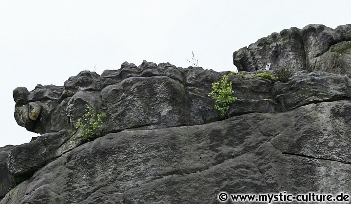 Eine mutmaßliche Skulptur am Wackelsteinfelsen die an eine Echse oder einen Drachen erinnert.