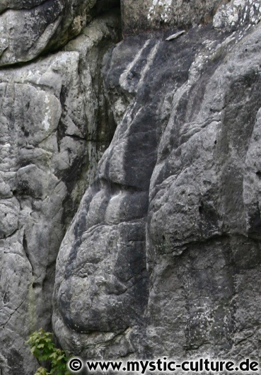 Ein interessantes Felsgesicht mit ausgeprägter Nasen- und Augen-Partie am Felsen 1 der Externsteine.