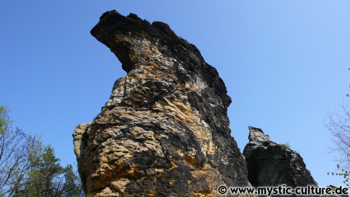 Der Kamelfelsen als markanter Punkt des Königsteins. Da im nördlichen Harzvorland bei Blankenburg derart viele Kultplätze und historische Stätten nachgewiesen wurden, wird vermutet das das Gebiet ein Zentralheiligtum mit überregionaler Bedeutung gewesen ist.