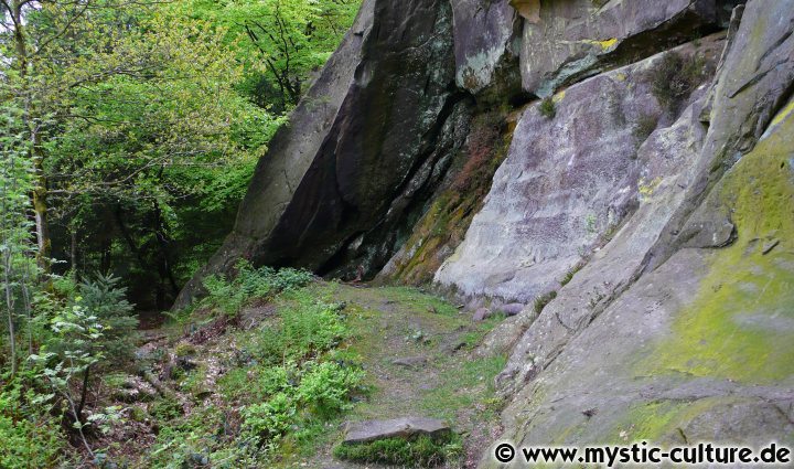 In der Edda ist von einer glatten Bank die Rede von der Odin auf die Welten schaute (Wotans Thron), gemäß G.Meier könnte sich dieser Ort an der Nordseite des Falkensteins befunden haben. In späteren Zeiten könnte dies die Bank der germanischen Seherin Veleda gewesen sein, die an den Externsteinen gelebt haben soll.