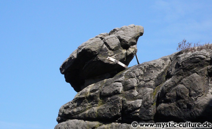 Auf dem Felsen 4 befindet sich der Wackelstein, aus Sicherheitsgründen wurde er mit Eisenschienen fixiert.
