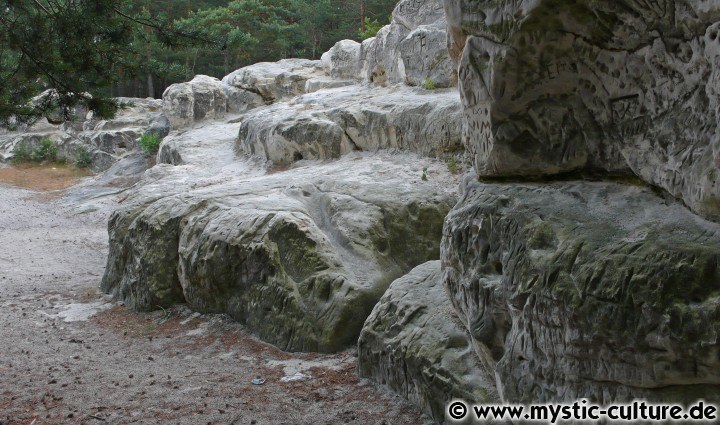 An einer Seite der Sandsteinfelsen befindet sich dieser terrassenförmige Bereich, es hat ein wenig den Anschein als ob hier einige Menschen Platz gehabt hätten um die Geschehnisse im Zentrum des Platzes zu verfolgen.