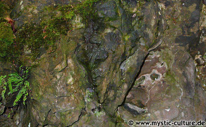 Drei Felsgesichter auf einem Felsvorsprung im nördlichen Ith (Oberberg).